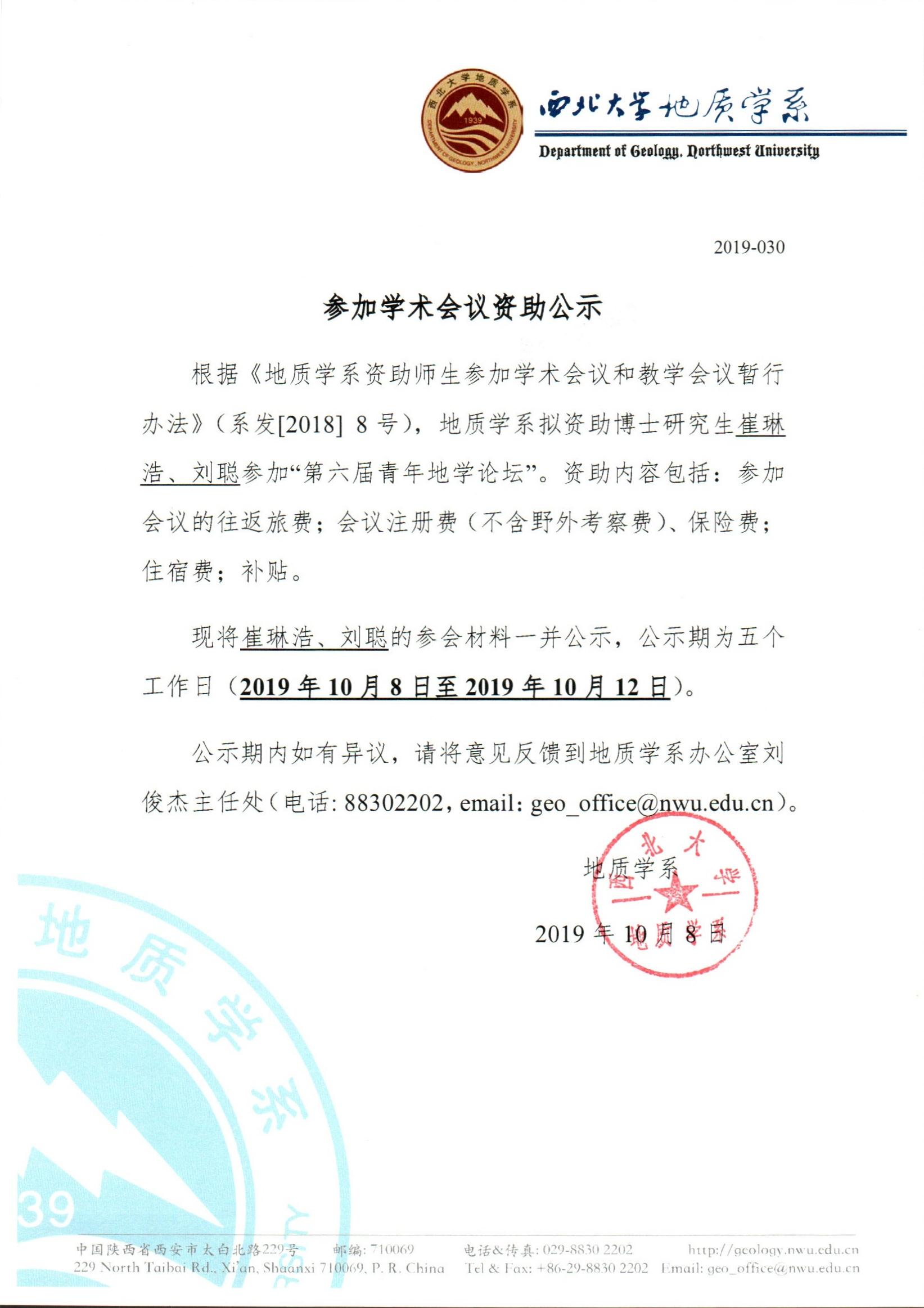 偷拍 关于资助研究生崔琳浩、刘聪参加学术会议的公示