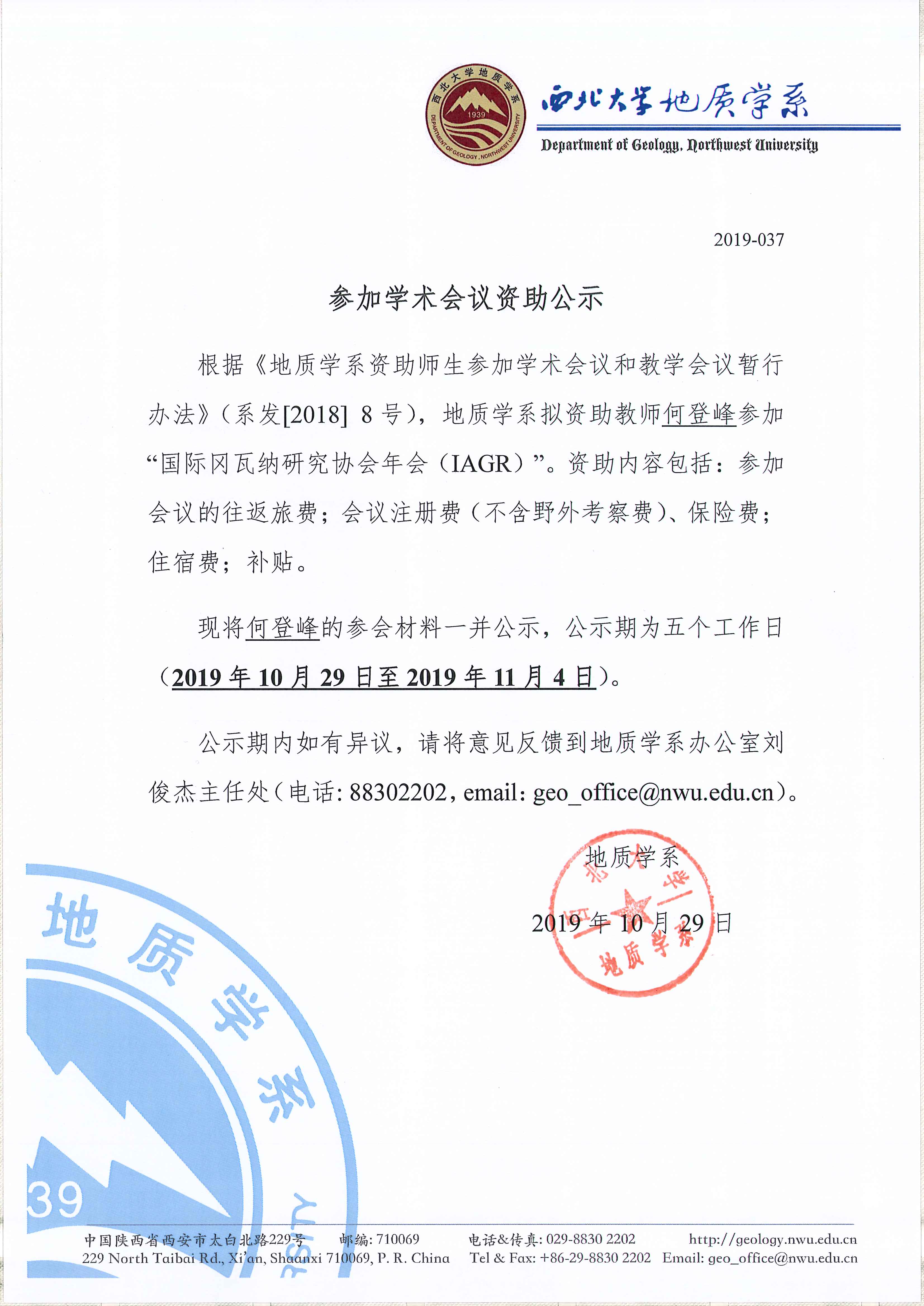偷拍 关于资助教师何登峰出国参加学术会议的公示