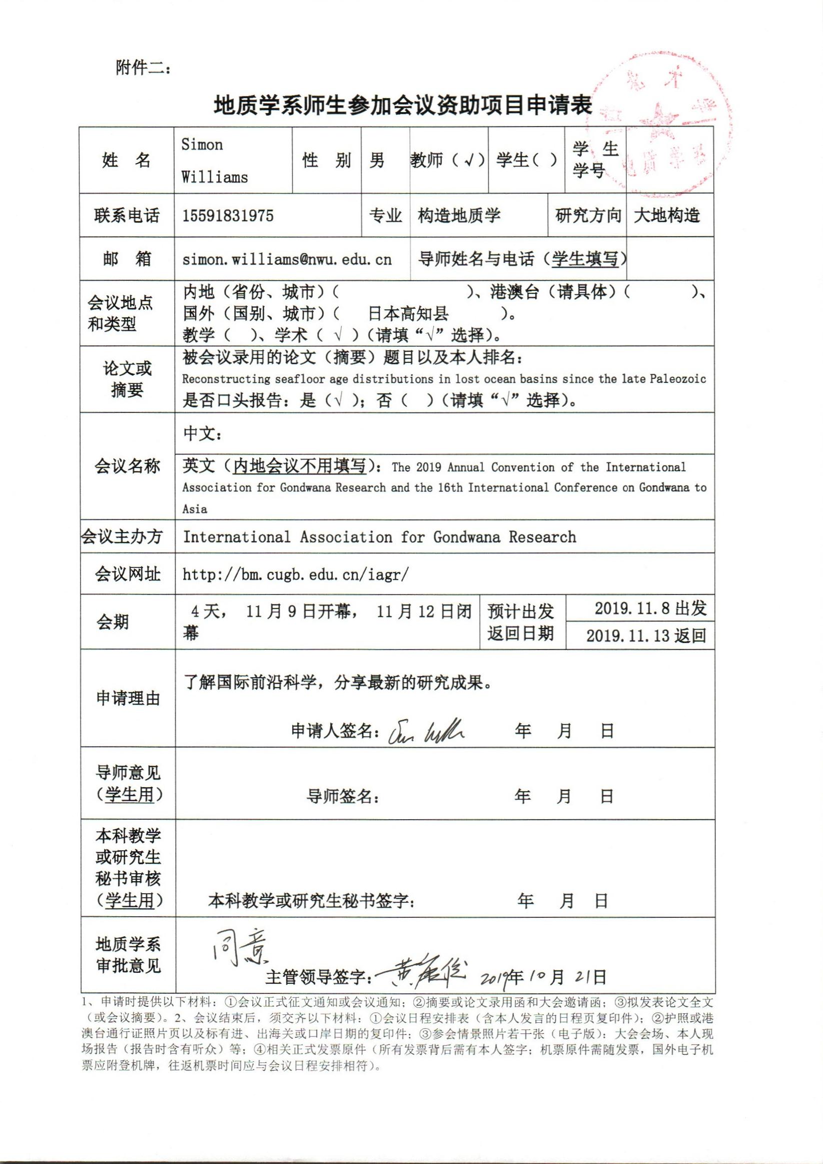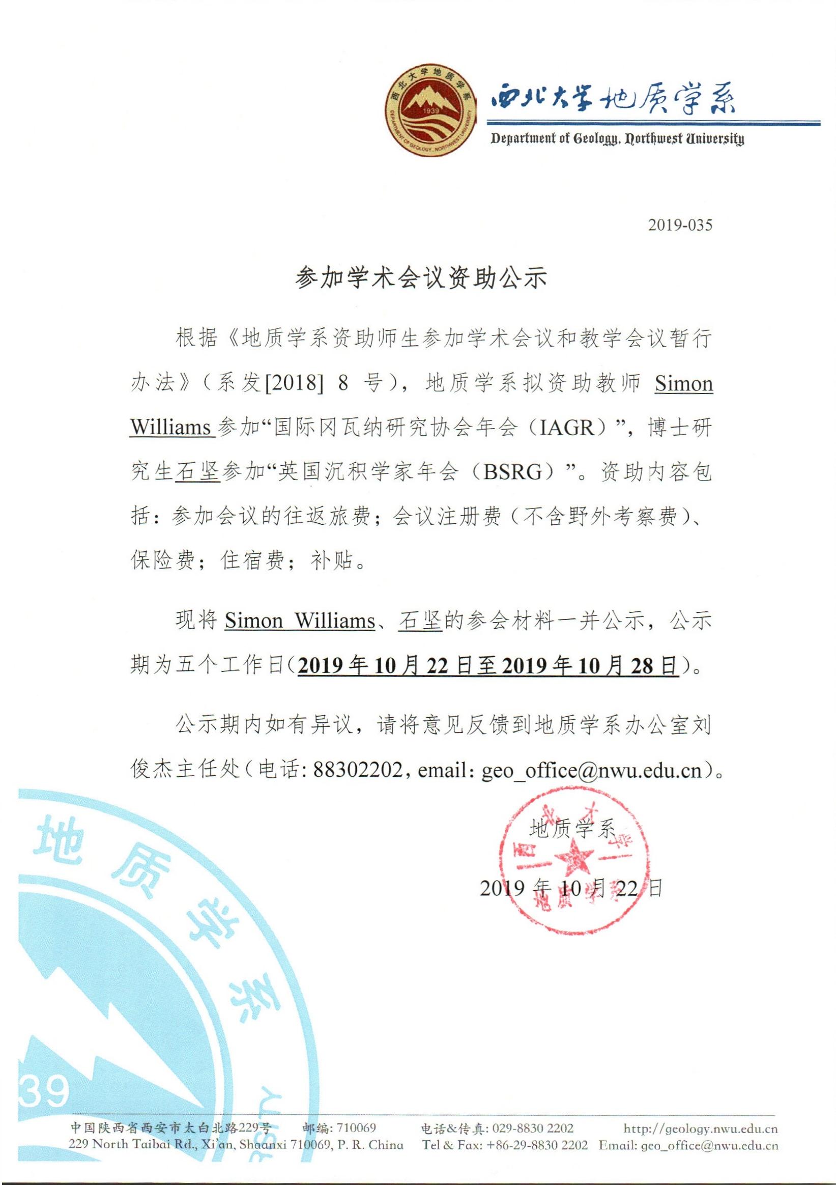 偷拍 关于资助教师Simon Williams、博士生石坚出国参加学术会议的公示