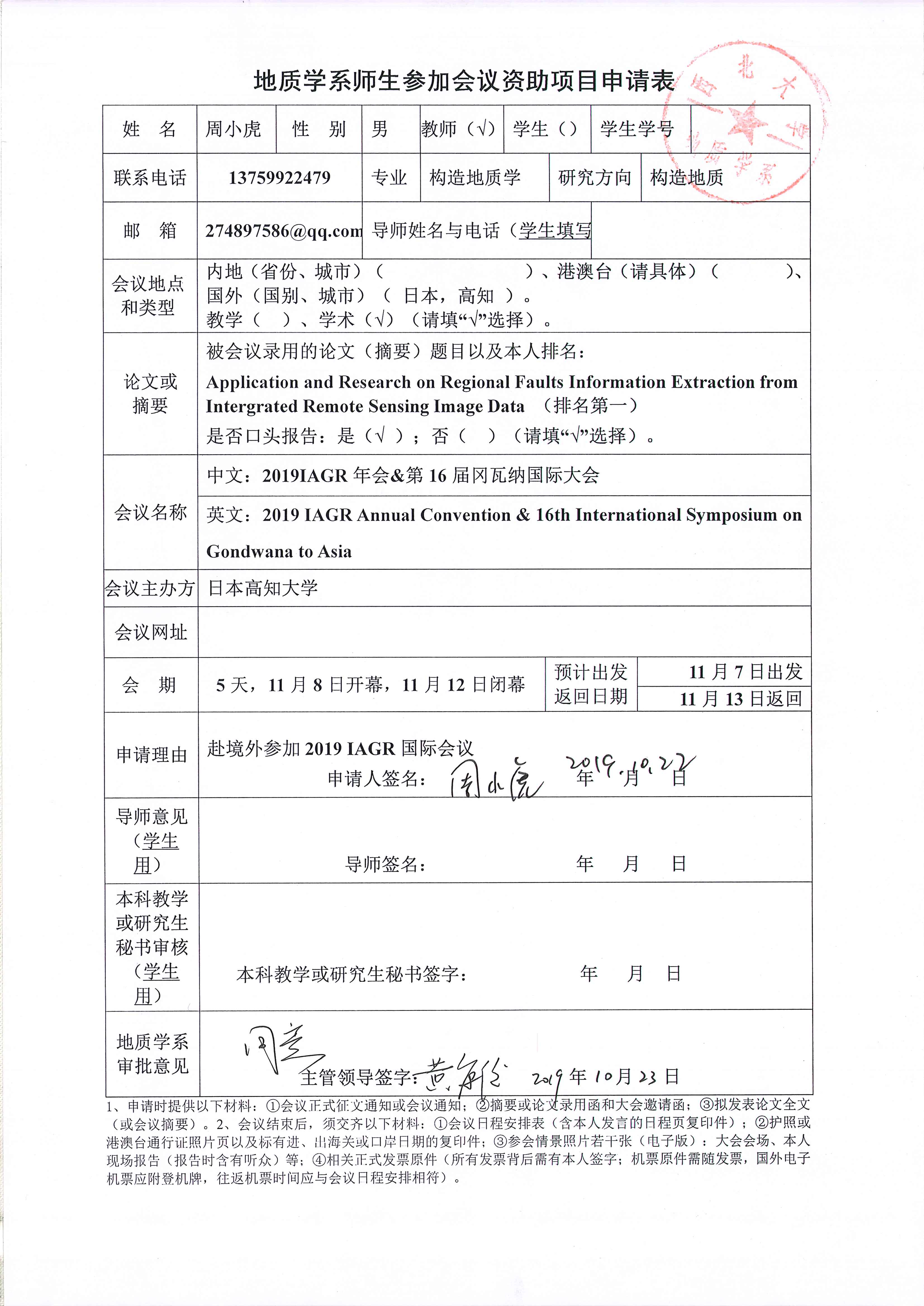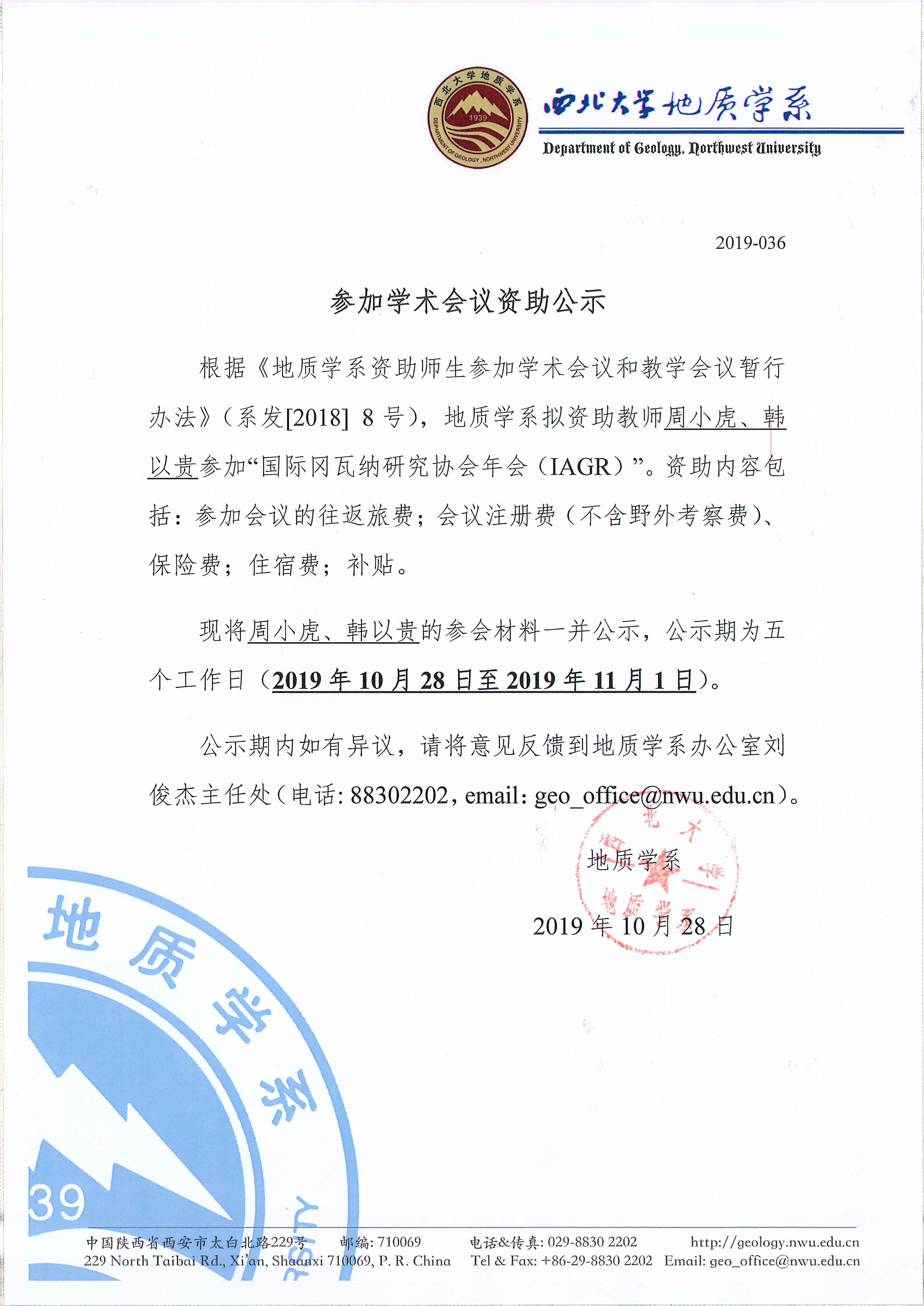 偷拍 关于资助教师周小虎、韩以贵出国参加学术会议的公示