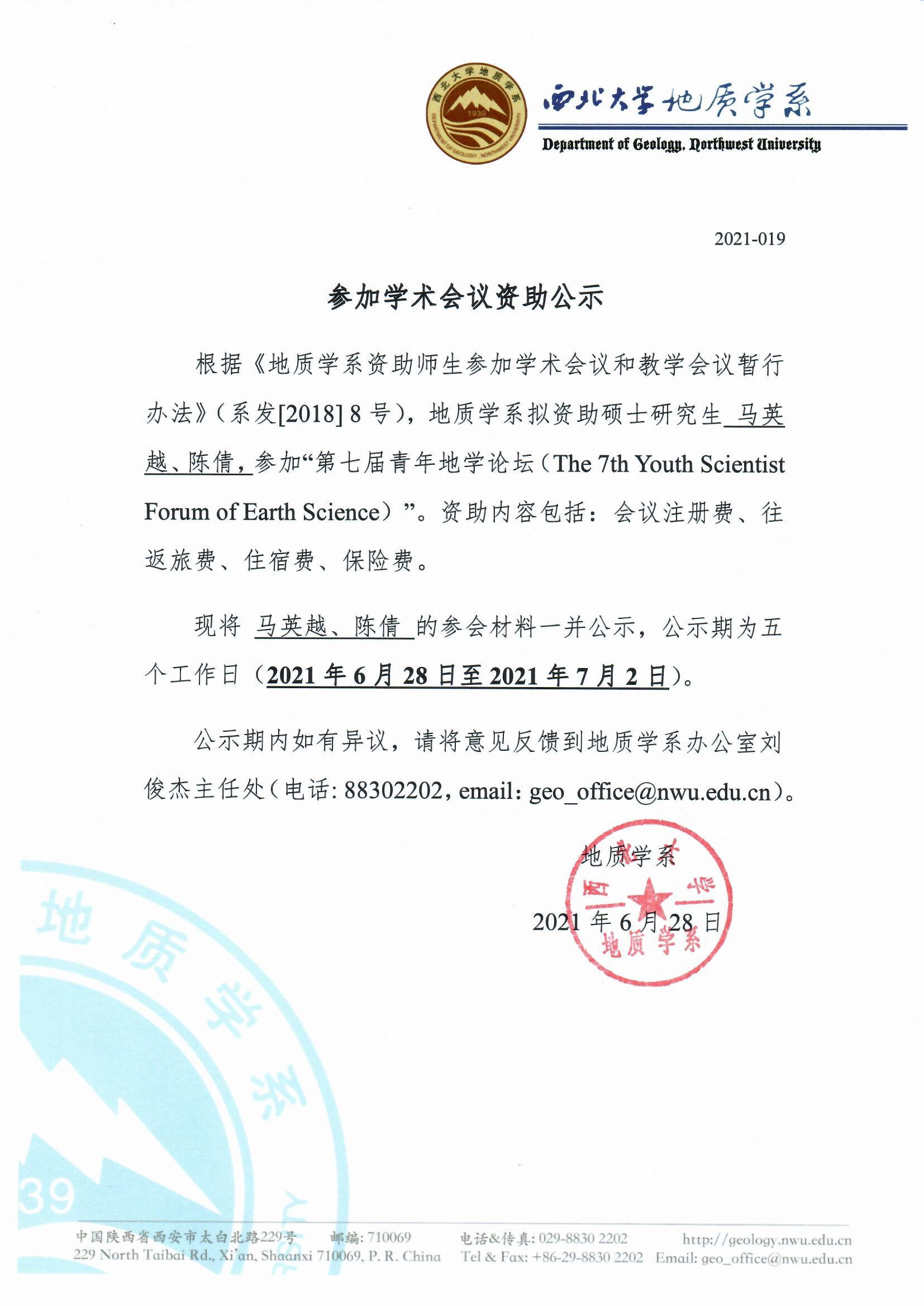 偷拍 关于资助硕士生马英越、陈倩参加国内会议的公示