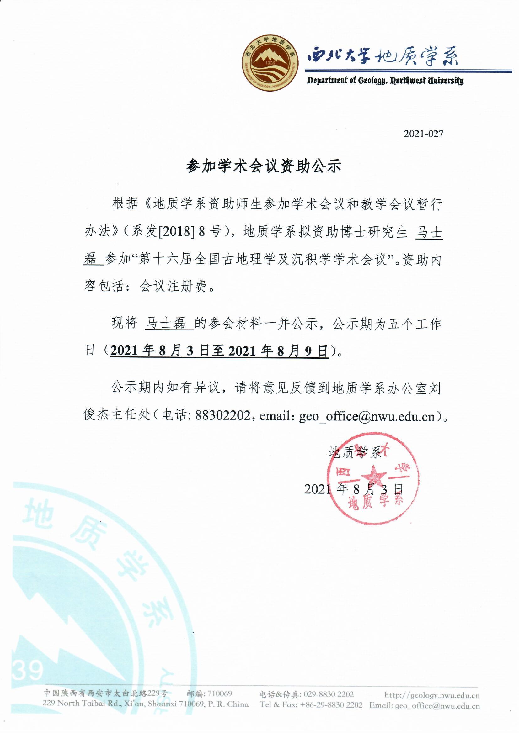 偷拍 关于资助博士研究生马士磊参加国内会议的公示