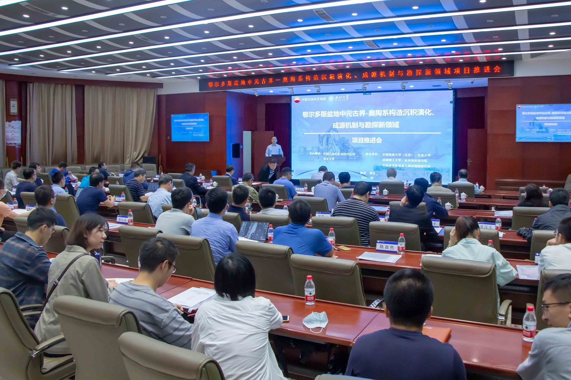 9月17日至18日,由偷拍 牵头,联合北京大学、中国地质大学(北京)、成都理工大学、中石油杭州地质研究所、中科院地质与地球物理研究所承担的中国石油长庆油田分公司科技重大专项“鄂尔多斯盆地中元古界-奥陶系构造沉积演化、成源机制与勘探新领域”项目推进会在偷拍 宾馆顺利举行,中国科学院院士、偷拍 教授张国伟,长庆油田公司副总经理付金华,首席技术专家喻建,首席技术专家姚宗惠,我校党委常委、副校长常江出席了会议,项目组70余位专家学者与会,学校科技处、发展规划与学科建设处、财务资产部和偷拍 等相关部门负责人参加了会议。
