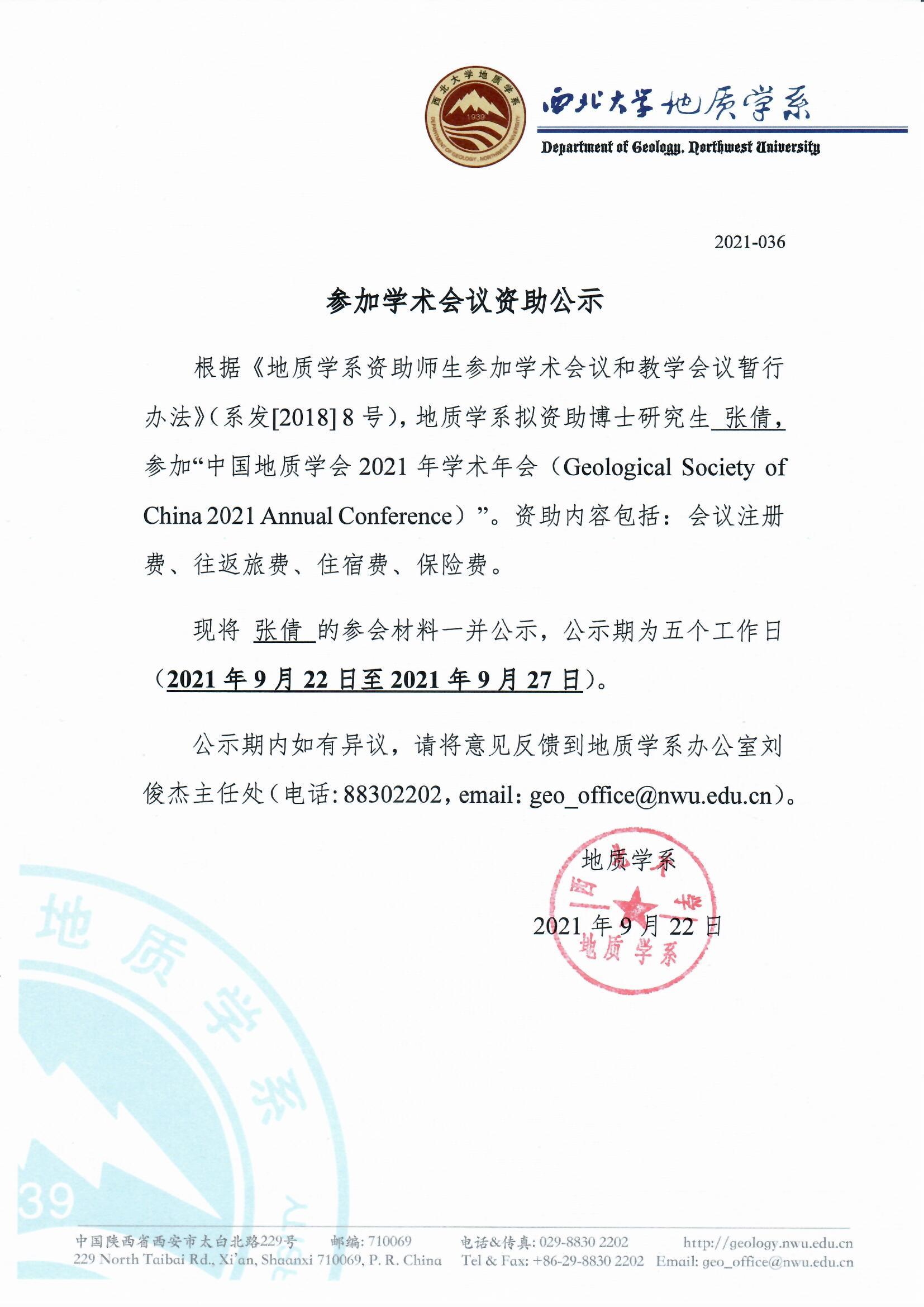 偷拍 关于资助博士研究生张倩参加国内会议的公示
