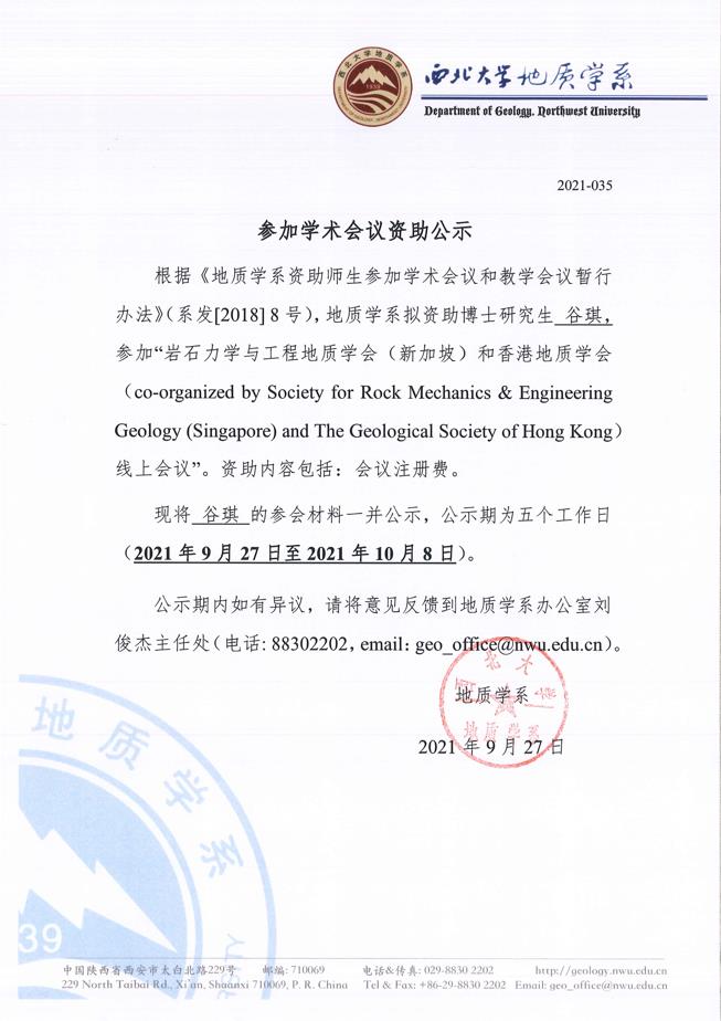 偷拍 关于资助博士研究生谷琪参加国际会议的公示