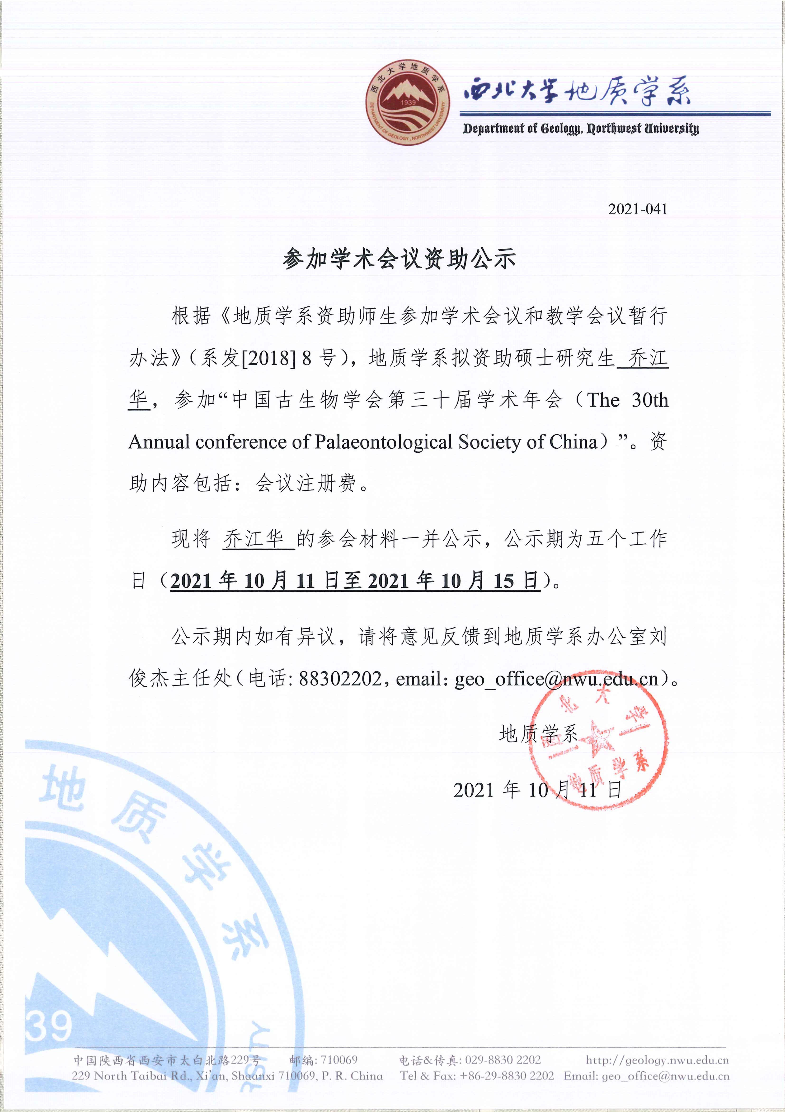 偷拍 关于资助博士研究生乔江华参加国内会议的公示