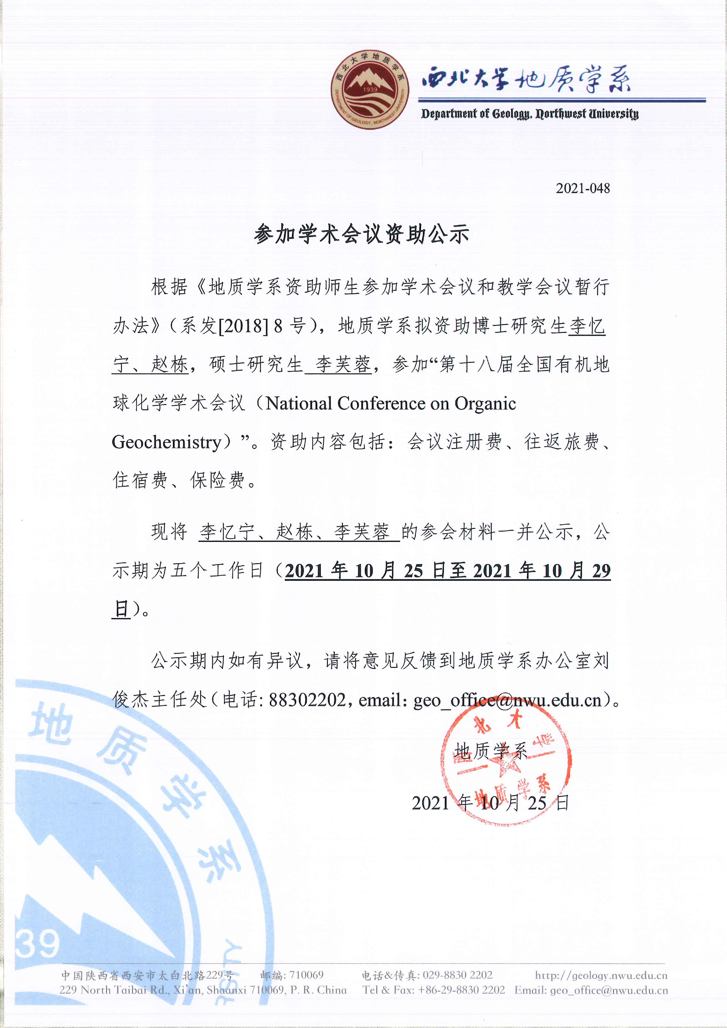 偷拍 关于资助博士研究生李忆宁等参加国内会议的公示