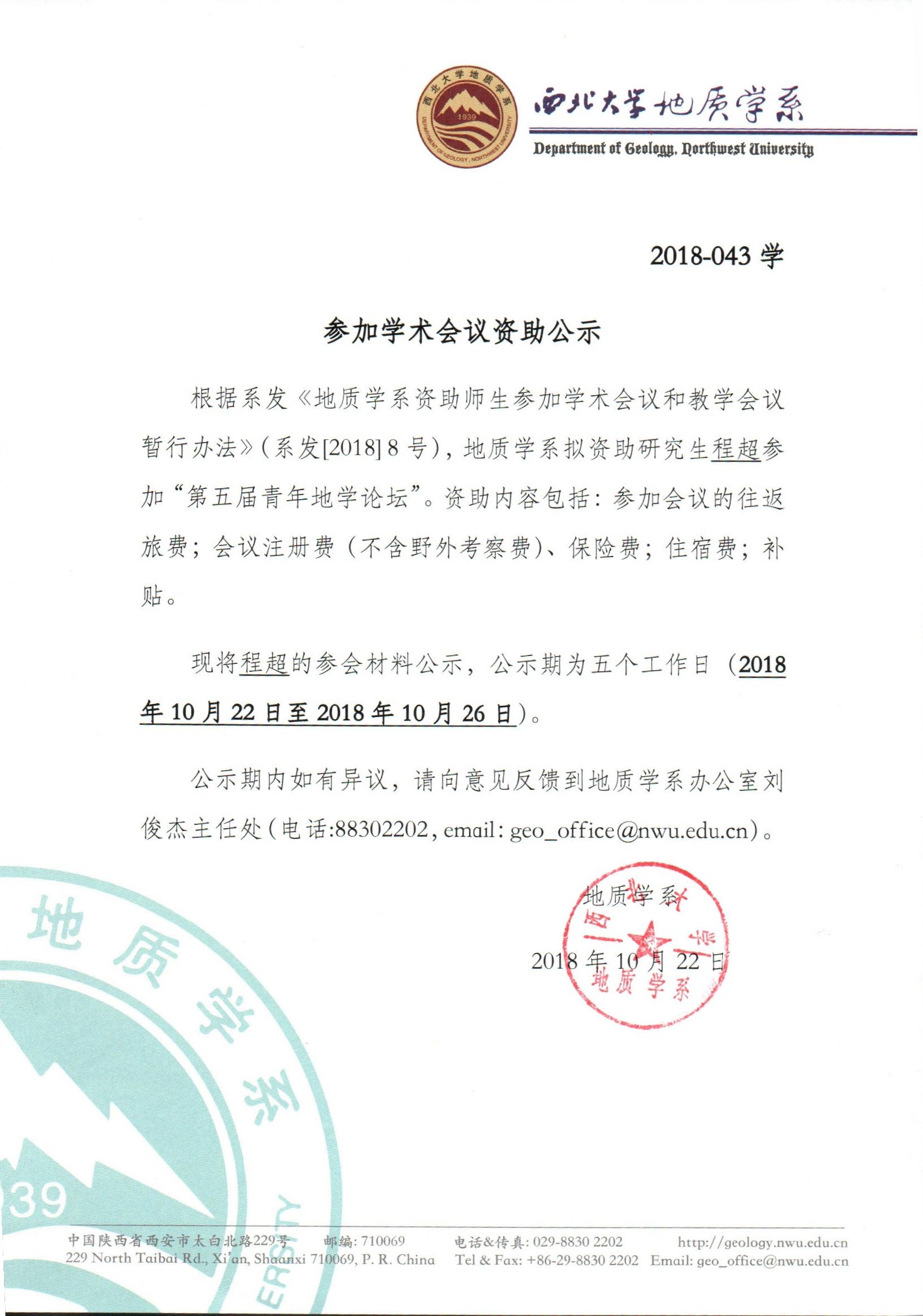 偷拍 关于资助程超同学参加学术会议的公示