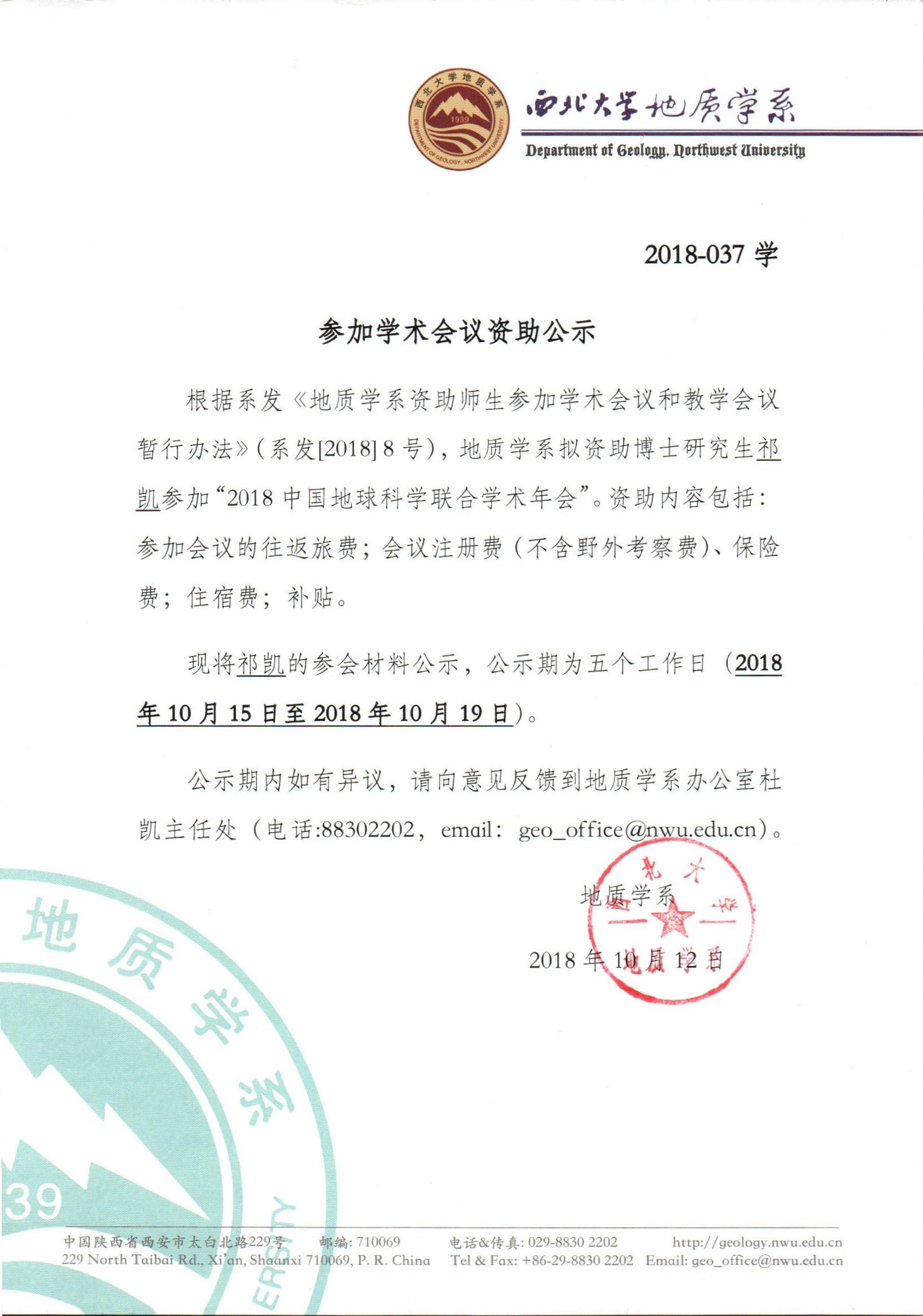 偷拍 关于资助祁凯同学参加学术会议的公示