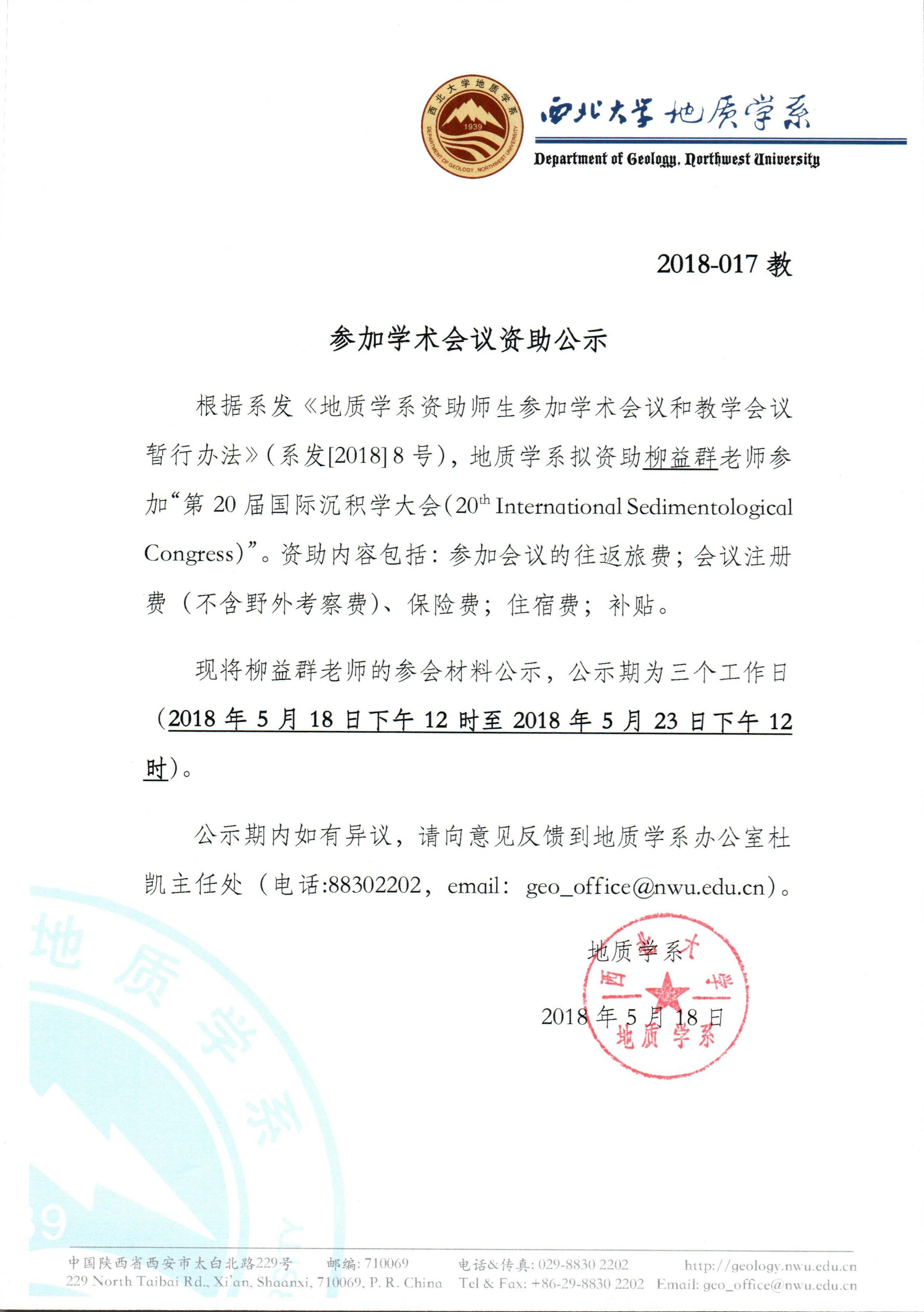 偷拍 关于资助柳益群老师参加学术会议的公示